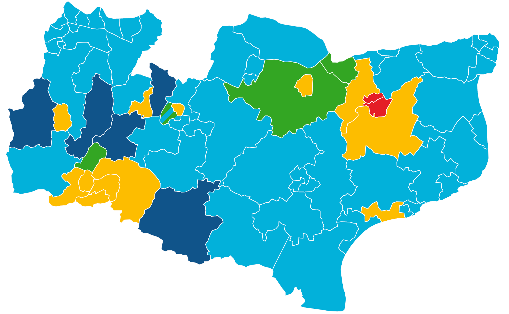 Most of these gains came at the expense of the Conservatives, the long-time rulers of Kent, who saw themselves effectively wiped off of Kent’s electoral map. Kent County Council Leader Roger Gough saw himself lose his seat alongside every single Conservative Cabinet member who stood for re-election. For much of the day, it looked like the party could be eliminated from the council entirely, but a clutch of seats, mainly in Tonbridge and Malling, allowed the party to retain some presence on the council.