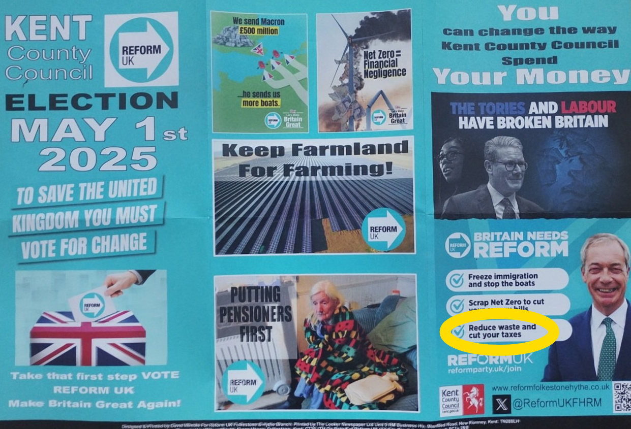 As an added bonus, the leaflet at the centre of all this was itself later withdrawn after Reform printed the KCC logo on it, which election literature is very much not supposed to do.