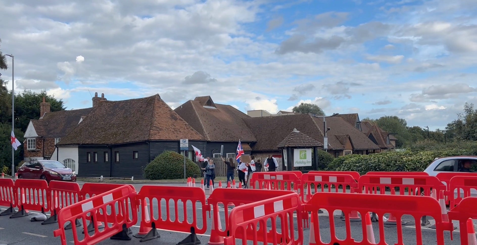 We’re trying to take a week off from writing about flags, but our eyebrows were raised by a story on KentOnline that claimed anti-immigration protestors had ‘descended’ on the Holiday Inn in Ashford.