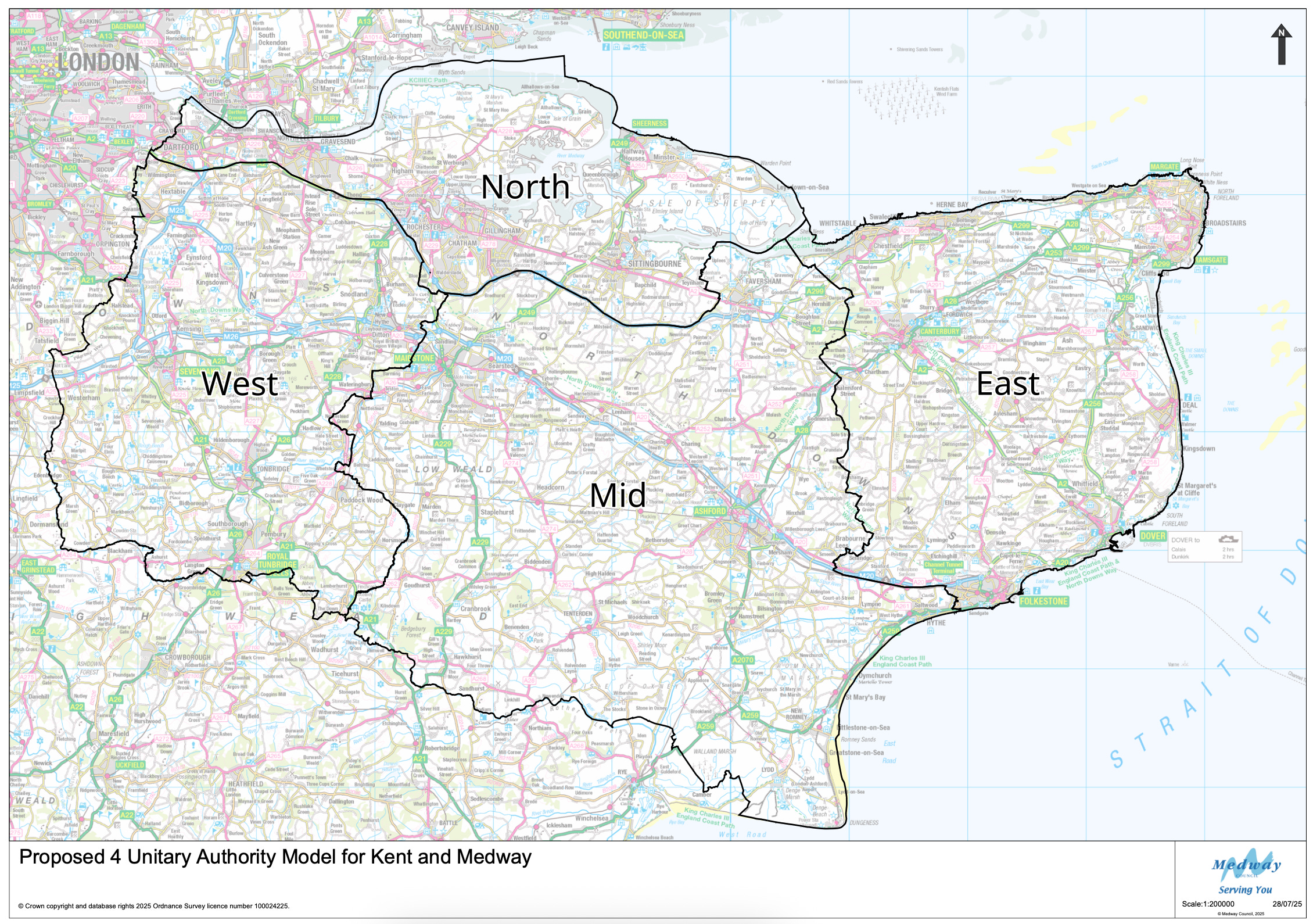 We seem to talk about maps a lot here, as we move closer to the grand reorganisation of Kent into new unitary authorities. It’s usually a pretty dry affair, but a proposal this week has sparked an angry response from one council leader, proving that any consensus for the county will be challenging to achieve. Further down, we have news of a questionable publicity campaign from KCC, other news from the authority, sad news of an awful person having a point, news in brief, and more.